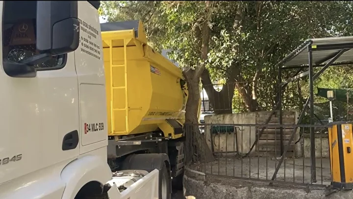 Olay saat 16.00 sıralarında Feneryolu Mahallesi Eski Karakol Sokak’ta meydana geldi. Sokağa giren 34 MLC 609 plakalı hafriyat kamyonu, sokağın eninin dar olması sebebiyle iki duvar arasına sıkıştı.